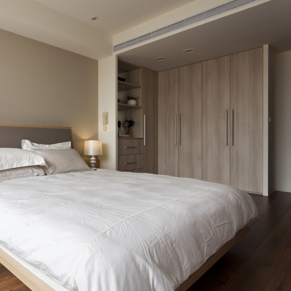 Tempered Glass Sliding Door Modern Design Wooden Wardrobe