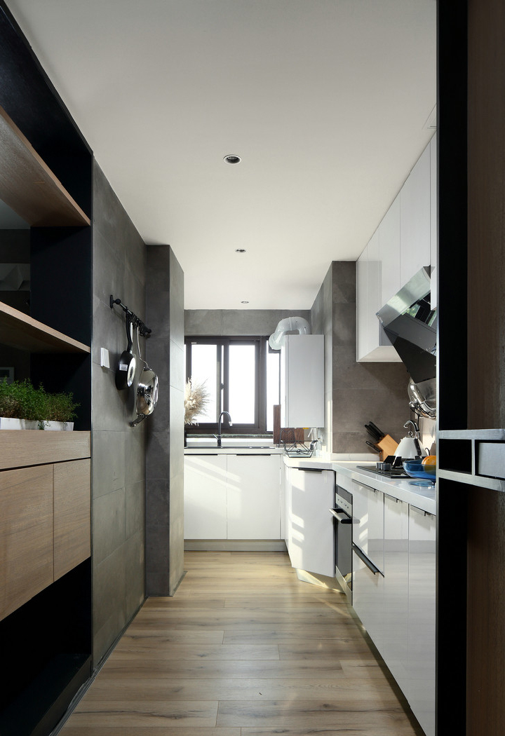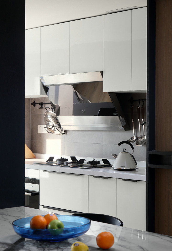 High Glossy White Lacquer Finished One Wall Kitchen Cabinets