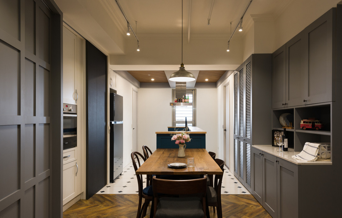 Dark Grey Solid Wood Design Modular Kitchen Pantry Cabinets with Shaker Doors