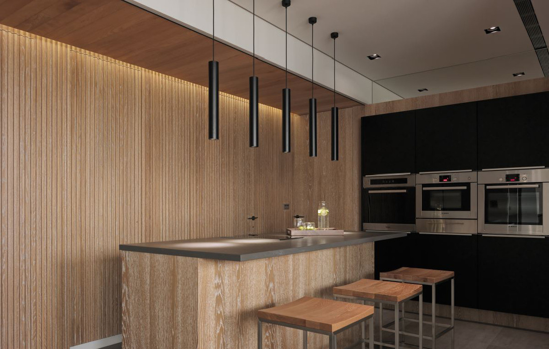 Melamine Finished Plywood Modular Kitchen Cabinets Design