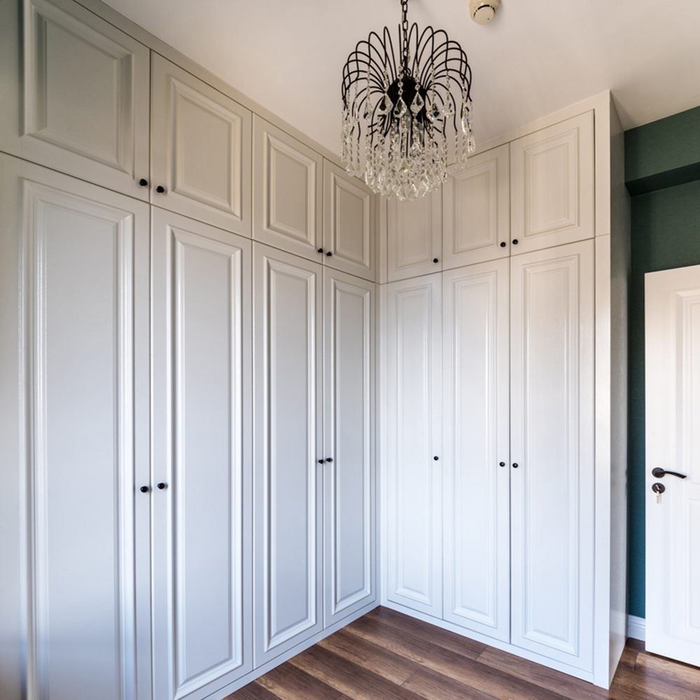 L Shaped Customized White Painted Solid Wood Bedroom Wardrobes