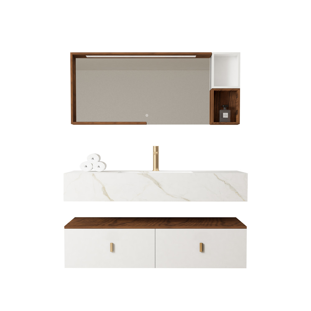 Melamine Plywood Wall Mounetd Bathroom Sink Cabinet with LED Mirror