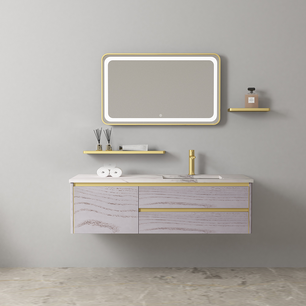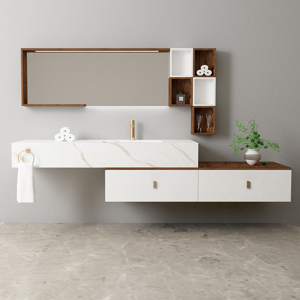 Modern Ash Wooden Mable White Painted Single Sink Bathroom Cabinet