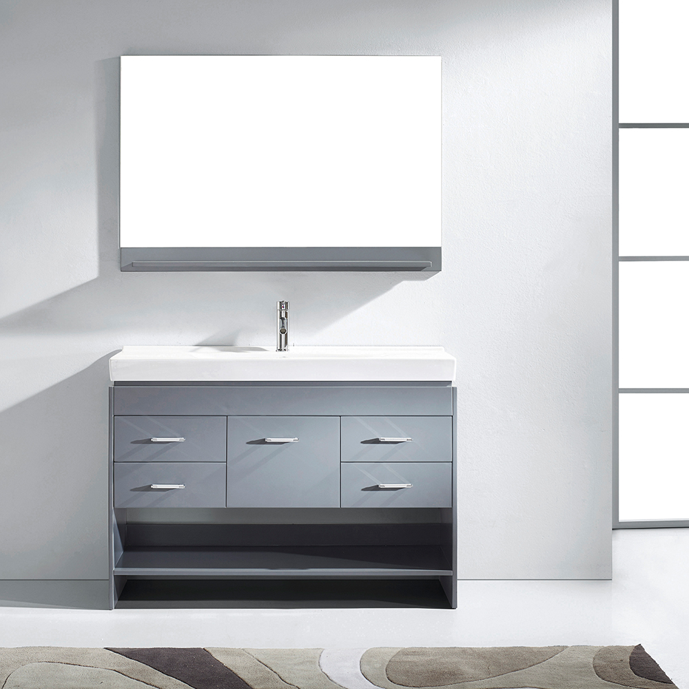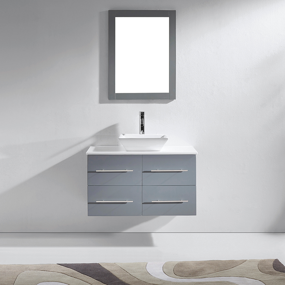 Light Grey Finished Wall Mounted Bathroom Vanity Cabinet Design