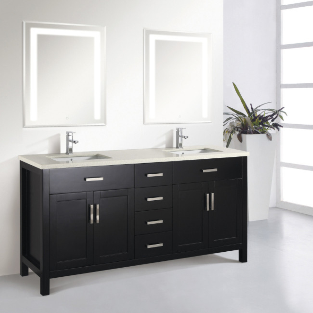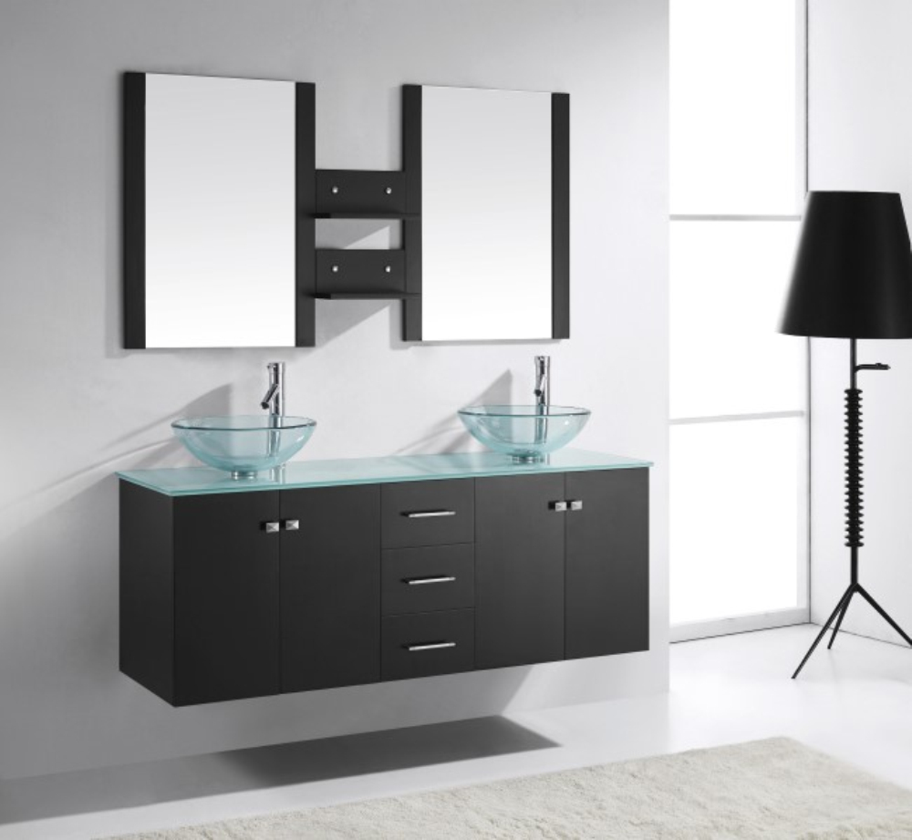 Modern Design Solid Wood Floating Mounted Double Bowls Bathroom Cabinet