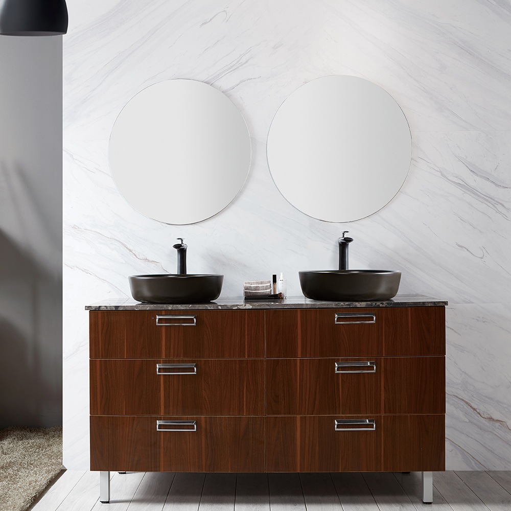 Floor Mounted Wooden 60 Inch Bathroom Furniture Double Sinks Design with Mirrors